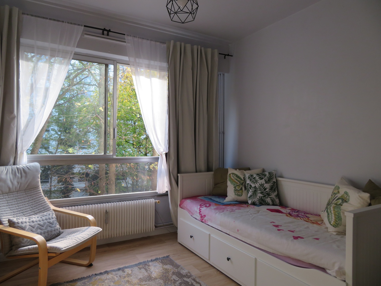 Loyer : 455 € + 95 € de charges/mois (eau, chauffage, ascenseur, nettoyage des communs, espaces verts, ordures ménagères)