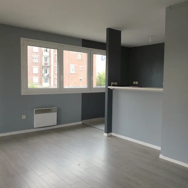 Rue de la Concorde à la Madeleine, je suis un appartement T2 non meublé de 33M² au 1er étage comprenant une entrée, un séjour avec placard, une cuisine séparée, une grande chambre avec placard, une salle de bains avec toilettes. Double vitrage. Libre de suite.