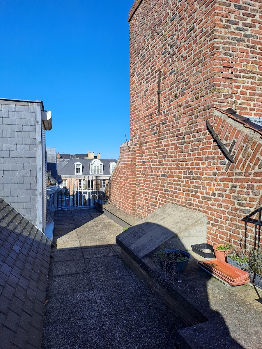En plein Centre de LILLE, entre la place Rihour et la place de la République, vous serez sous le charme de cet appartement T2 de 45M² au 6ème étage et dernier étage avec ascenseur, comprenant une entrée, un séjour traversant de 20M² avec parquet en chevron, cheminée et un accès sur une terrasse de 10M² exposée sud/est, cuisine séparée, chambre 11M² avec parquet en chevron, salle de douche (douche, lavabo et toilette), double vitrage, persiennes, cave.